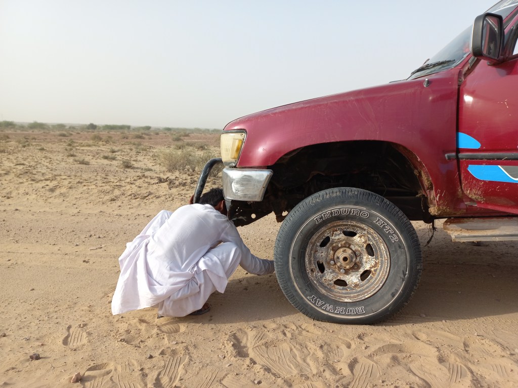 We set out at dawn, in a rickety Datsun double-cabin that is on its last legs. It is one of many taxis that operate out of the desert, transporting locals and livestock to remote spots that lack metalled roads. The old vehicle risks breaking down – which it eventually does – miles away from any human habitation or mobile network coverage. But such concerns are met with a polite laugh by the locals and dismissed as paranoia.